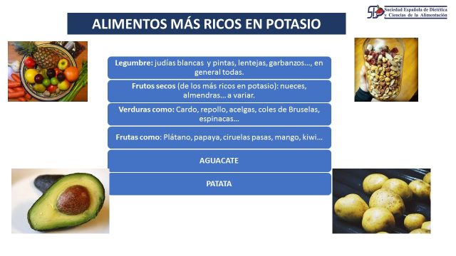 - Su consumo debe equilibrarse con el del sodio para la regulación de la tensión arterial.